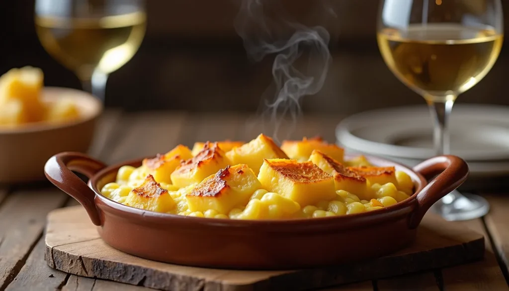 La rencontre entre le Reblochon fermier et le vin blanc de Savoie s’inscrit dans une tradition d’autosuffisance alimentaire propre aux régions montagneuses. Les producteurs utilisaient leurs propres produits – pommes de terre cultivées localement, lardons issus des cochons élevés dans les fermes, et bien sûr, le vin blanc produit sur les coteaux ensoleillés des vallées savoyardes.